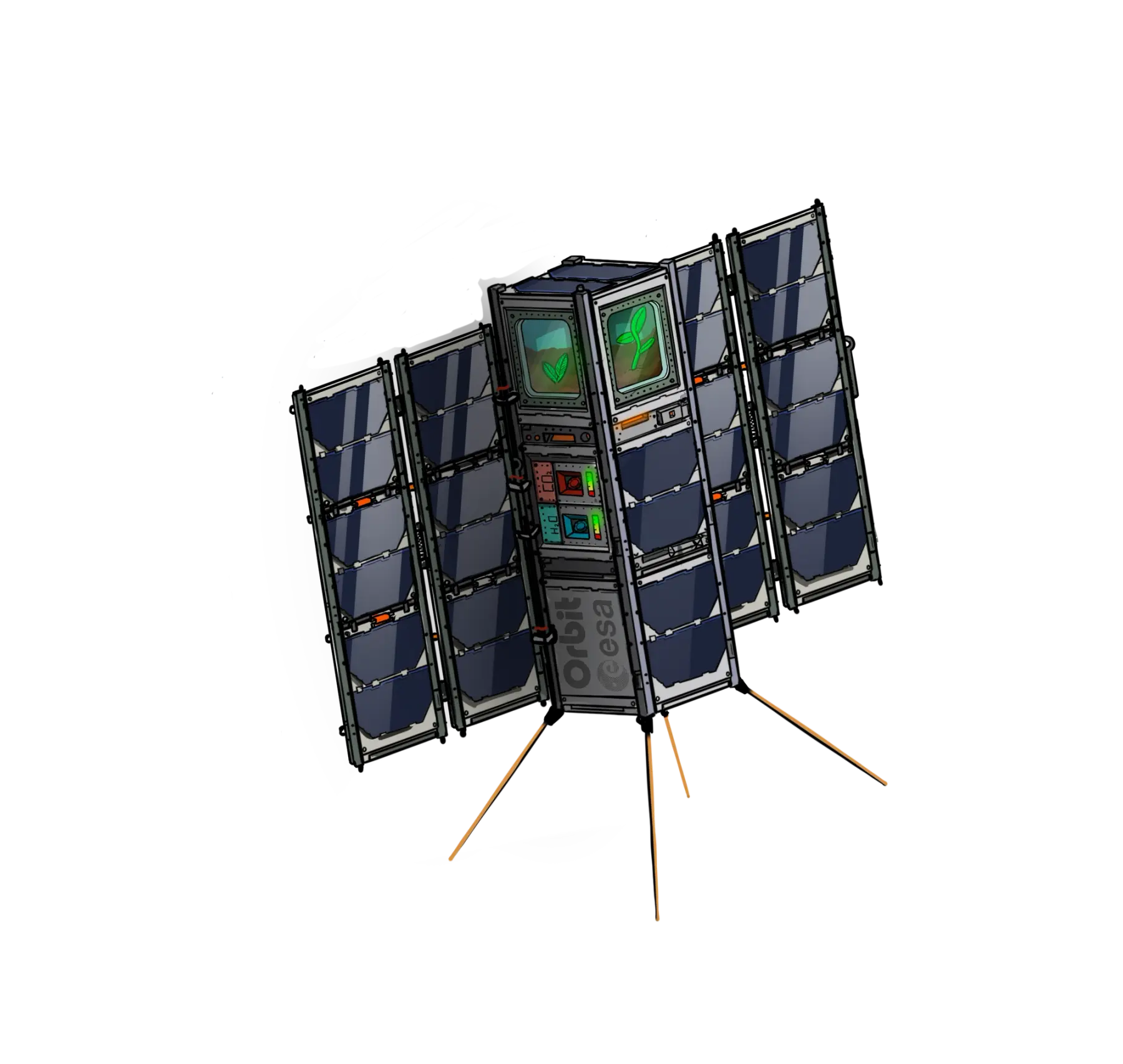 The satellite is a highly complex system made up of multiple subsystems, each contributing a critical function. Some of the hardware components include reaction wheels, magnetorquers, solar panels, sun sensors, a heatsink, an electrical power system, a BioBox to keep the plant safe and an On-Board Computer built completely by Orbit.